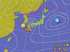 台風コンディションとしてはちょっと物足りない感じでしたが、台風がけっこう離れてる位置だったのでこれだけ吹いたからよかったのかも(並の台風ならだめだったかも)十分に楽しめました。ウェーブはホントに楽しい♪明日吹きそうならどっか狙いたいな〜。 |